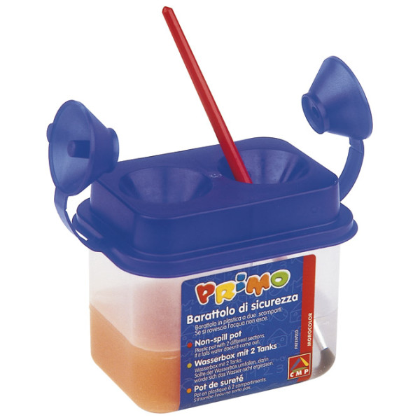 plastična; četvrtasta; ima 2 odeljka; poklopac sprečava prosipanje vode; boja poklopca: crvena, plava i žuta