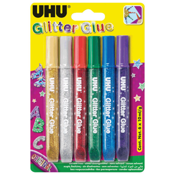 Lepak glitter glue 10ml pk6 UHU UHML11020100001 sortirano blister