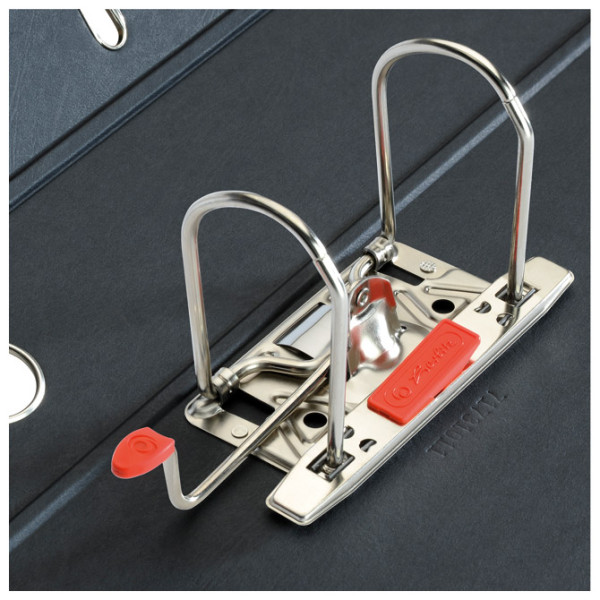 format: A4; rikna: 80 mm; plastificirani karton sa spoljašnje strane i crni papir sa unutrašnje strane; poboljšani mehanizam s gumiranim pritiskivačem