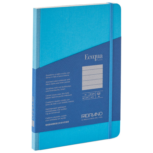 Sveska sa gumicom (platno) A5 linije 80L 90g EcoQua Plus Fabriano 19142111 tirkizna